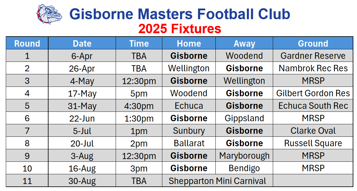 Gisborne Masters Football Club acknowledges the Dja Dja Wurrung and Wurundjeri Woi Wurrung Peoples of the Kulin Nation, who are the traditional custodians of the land on which we play. We pay our respect to their Elders past and present and extend that respect to all Aboriginal and Torres Strait Islander peoples today